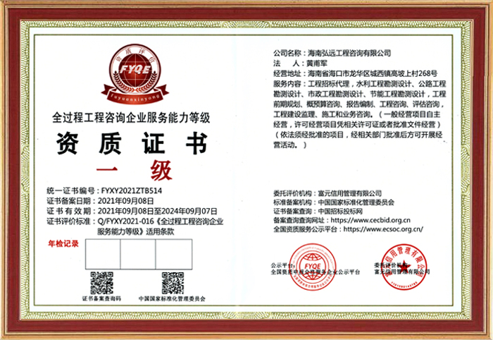 全過程工程咨詢企業(yè)服務能力等級資質(zhì)證書一級